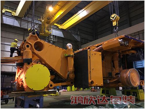 湘潭650噸礦山車出口澳洲,采用熱收縮防銹,發(fā)動機整體防護,其他出口熏蒸木箱打包裝箱,我司負責從包裝設計方案,現(xiàn)場打包及運輸一站式服務,省去客戶其他多環(huán)節(jié)的操作,省時省力高效率節(jié)成本?!?